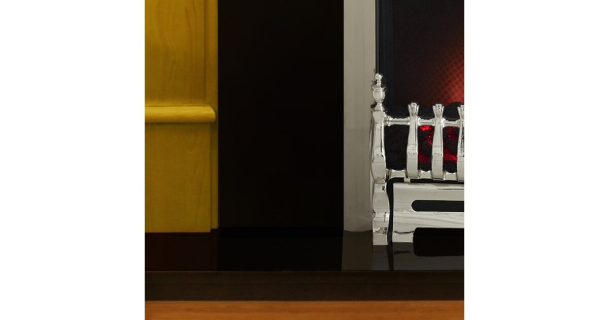 Finished in warm pine with an ornate carved detail, this fireplace allows you to enjoy the comfort of an indoor fire with no more hassle than plugging in a coffee maker, and uses the same amount of energy.